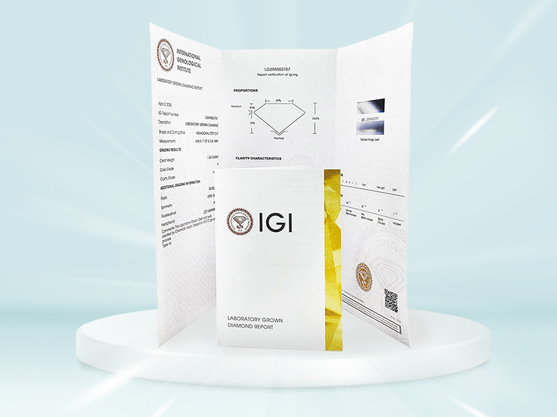 玉瑄實驗室鑽石,每一顆都附有GIA或IGI國際鑑定證書,並在腰圍刻上雷射編號,除保障硬度、色澤之外,也保障來源之處無法造假,這比僅僅只依靠一張保證書來驗明正身的天然鑽石,更有安全保障,是精打細算的聰明人兼顧愛情與財富的最佳首選。