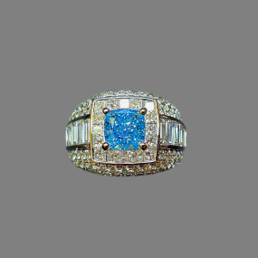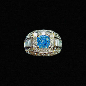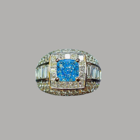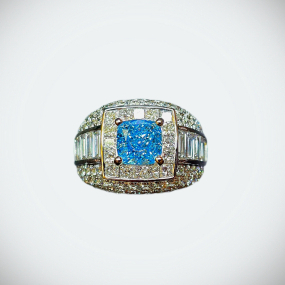 實驗室藍色彩鑽枕形男戒2克拉