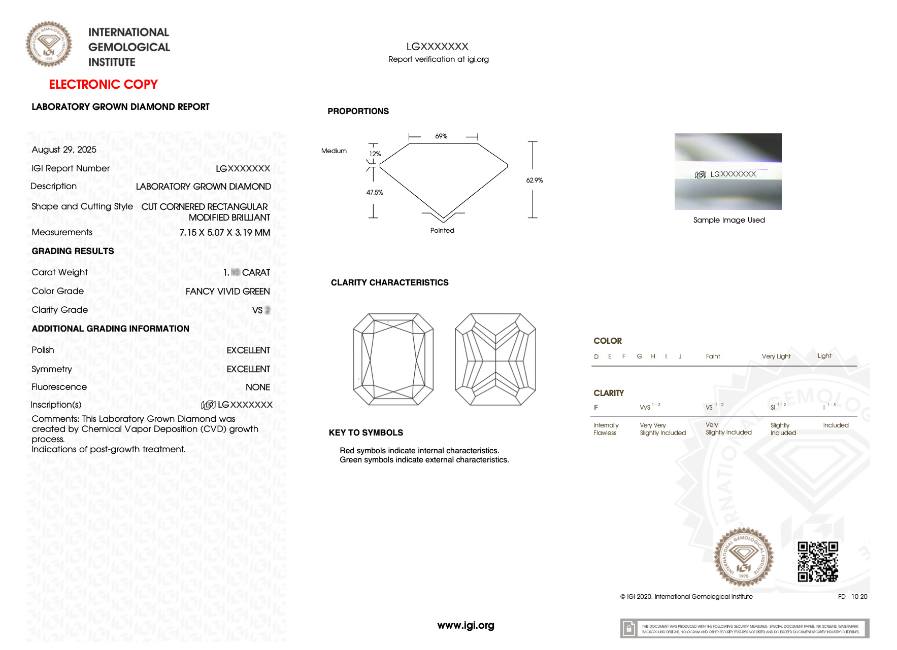 實驗室綠彩鑽雷帝恩形裸石1克拉