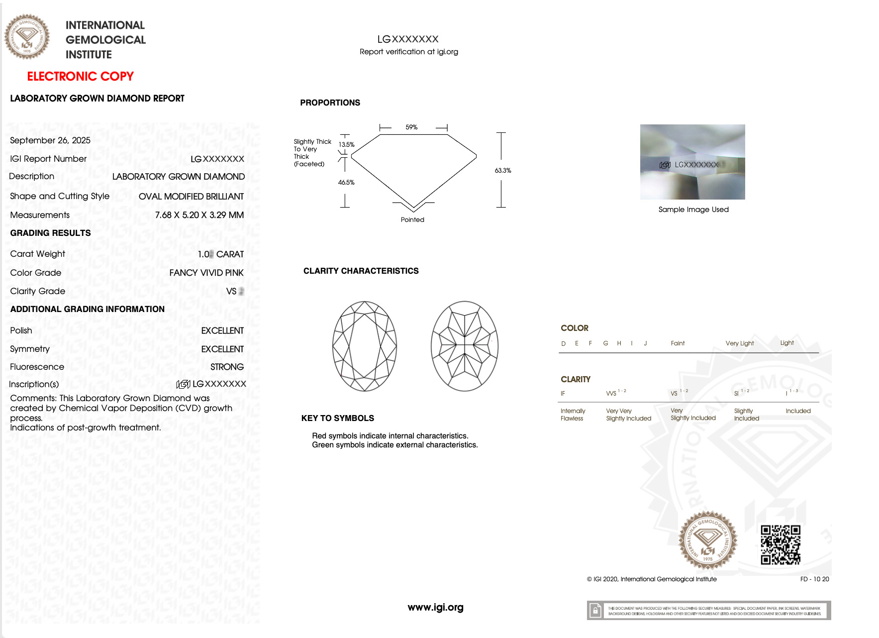 實驗室粉紅彩鑽橢圓形裸石1克拉